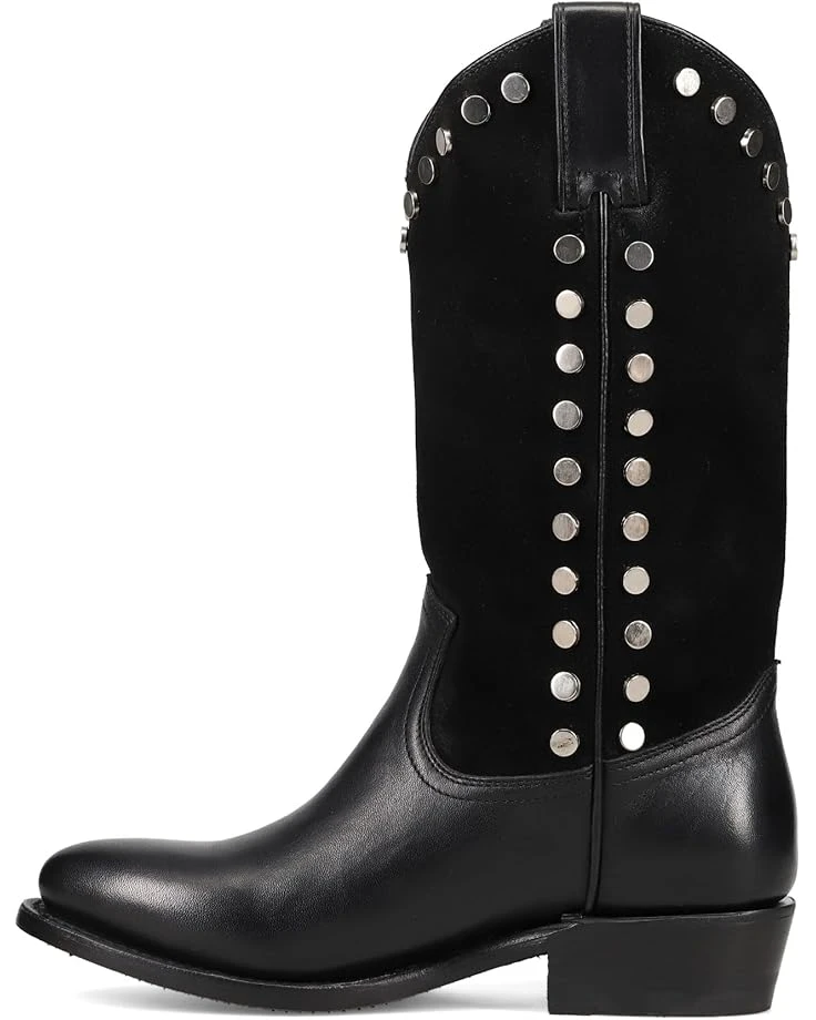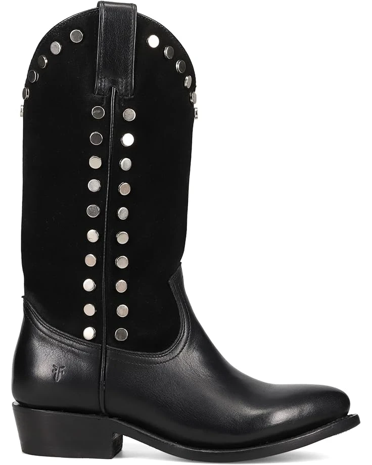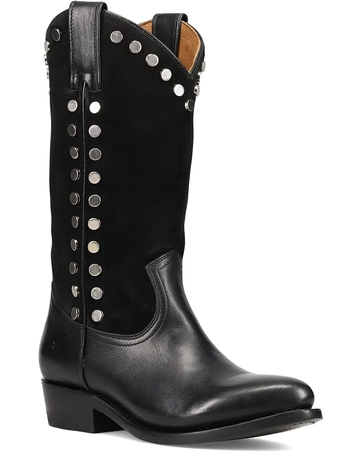 - Walk into bold style donning Frye® Billy Pull-On Stud. This handcrafted boot features premium leather upper, lining, and insole, ensuring a luxurious feel. The durable cork outsole and classic Western round toe offer long-lasting comfort. Mid-calf height and easy pull-on design make these boots perfect for any occasion. Trend-right studs and a chunky heel add a touch of edge, effortlessly pairing with everything from cutoffs to dresses. With the Goodyear welt construction, these boots promise unmatched durability and style, proving that comfort and design can coexist harmoniously.