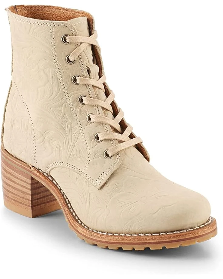 I bought these in the “Sunrise” color and was mightily impressed. An extremely well-crafted boot; built like a tank. Very beautiful on the foot, as well (makes your foot look smaller!). Unfortunately, they did not work for me: oddly, the arch is set further back on the footbed than in my other Frye boots, and as a result, the boot was very uncomfortable. If Frye would fix the arch problem, I’d be very grateful.