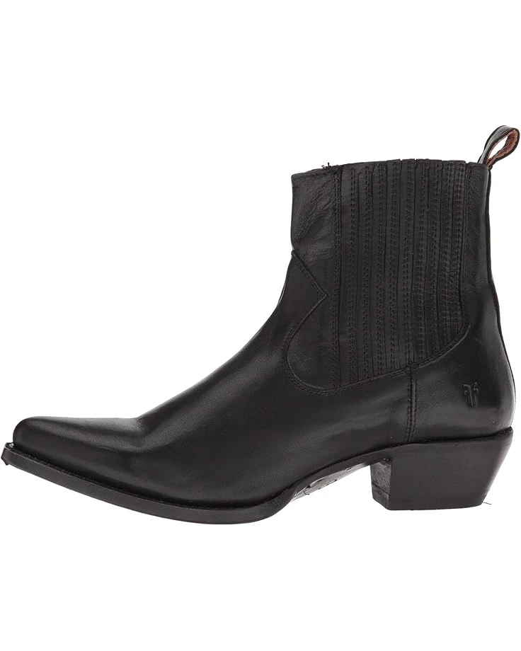 These boots are beautiful, super on trend, and comfortable too! I was looking for a short, black, western inspired boot, to wear with ankle length pants, mom jeans, skirts & dresses. I tried several brands at various prices points. In the end, I decided to get the “real” deal and was not disappointed. The leather is beautiful and smooth. The styling is perfect–western, but not over done. The sole has a hint of cushion, so they were comfortable on 1st wearing. I do recall having had to break in other pairs of Frye boots in the past. Not these. I did need to size up. Started with the 8.5 as that is the size I typically wear. Moved up to the 9 for comfort and sock wearing ability.