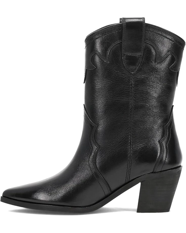 Very attractive boot, flattering height, nice stitching detail w/o being overly cowboy style but still exuding the style in a chic way. I will say these run small, I ordered a different pair of boots same size and they are way roomier. Dont be afraid to size up on these.