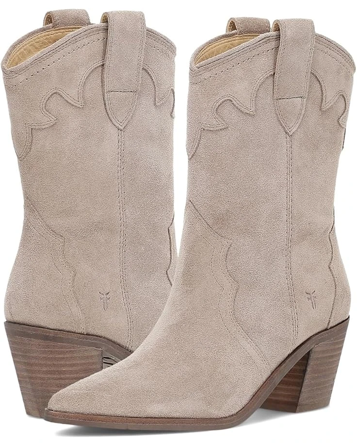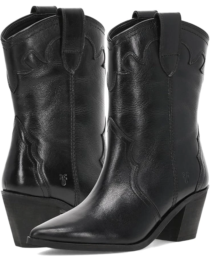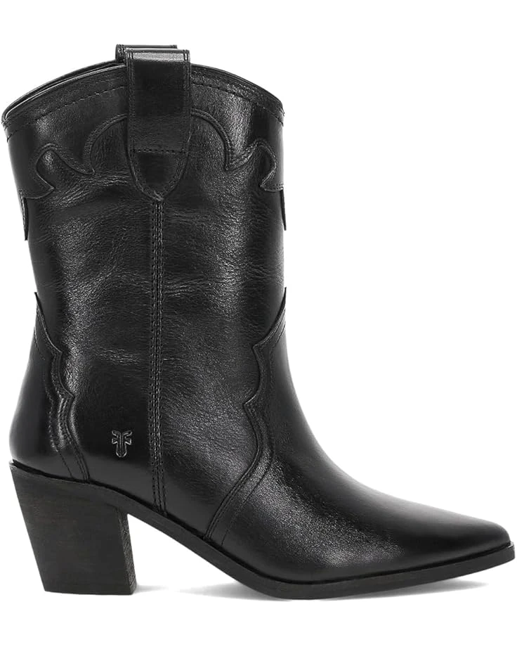 - Introducing the Frye® Sara Western Short Boots – Frye’s take on stylish ankle booties that effortlessly complement any outfit. Featuring a wrinkled metallic leather upper, these booties are built to last with cushioned, chunky block heels that provide all-day comfort. Made with a leather insole and lining, these calf-high western boots pair perfectly with cropped denim or flowing midi dresses.