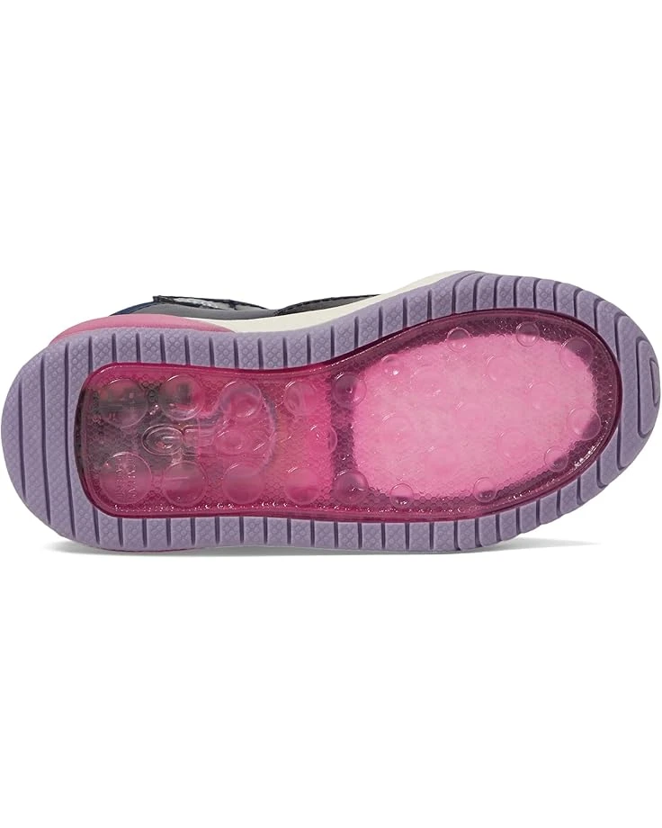- Geox™ patented breathable shoe for active kids features a unique microporous membrane that absorbs and expels sweat while keeping water out.