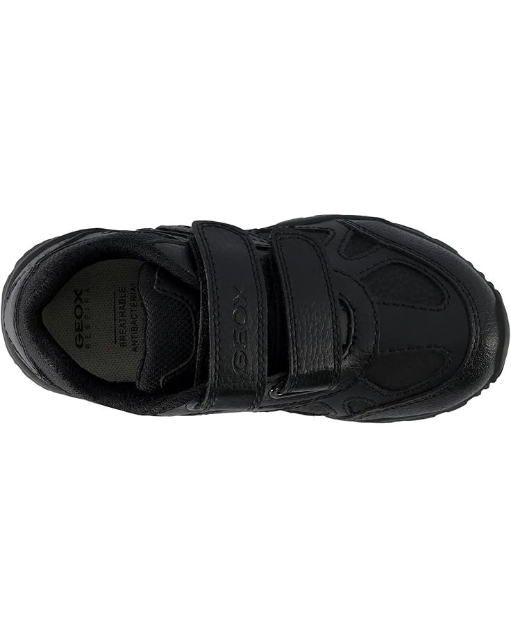 - Geox™ patented breathable shoe for active kids features a unique microporous membrane that absorbs and expels sweat while keeping water out.