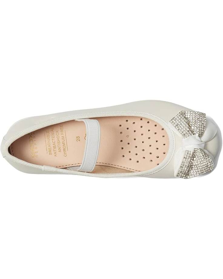 - Take a walk into whimsical wonder by styling the Geox® Kids Plie 83 ballet flats! Crafted with textile canvas and a soft synthetic microfiber lining, adorned with a charming bow on the toe. The insole made of sheep nappa leather ensures comfort, while elasticized strap closure promises a secure fit for playful little feet.