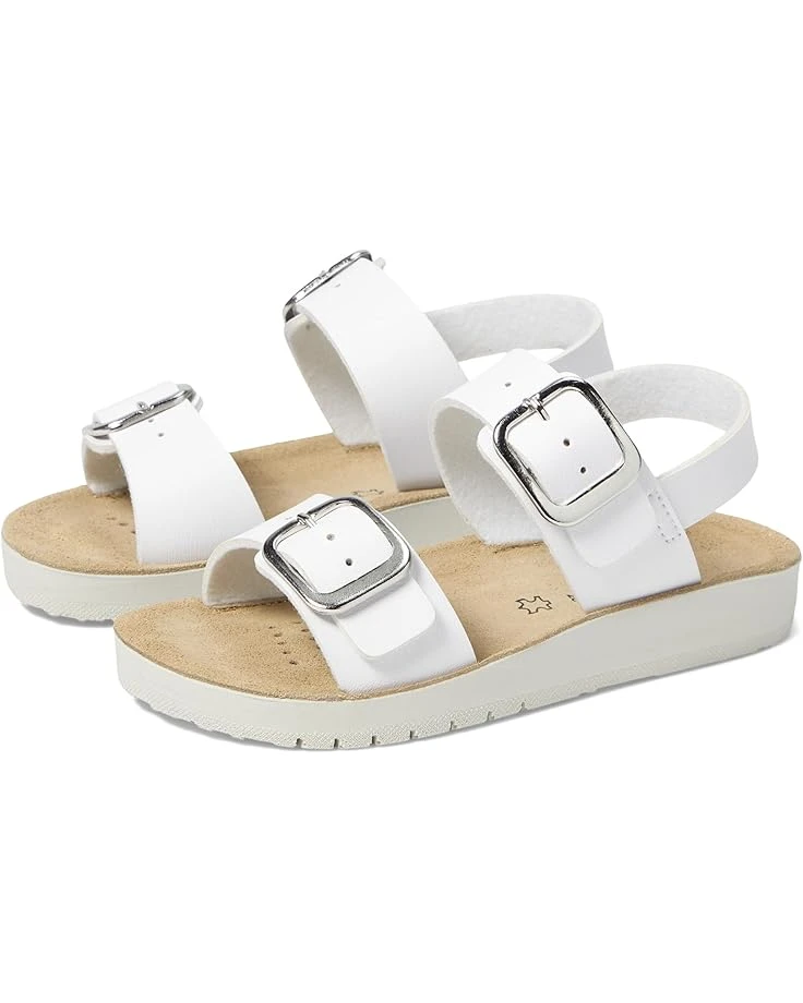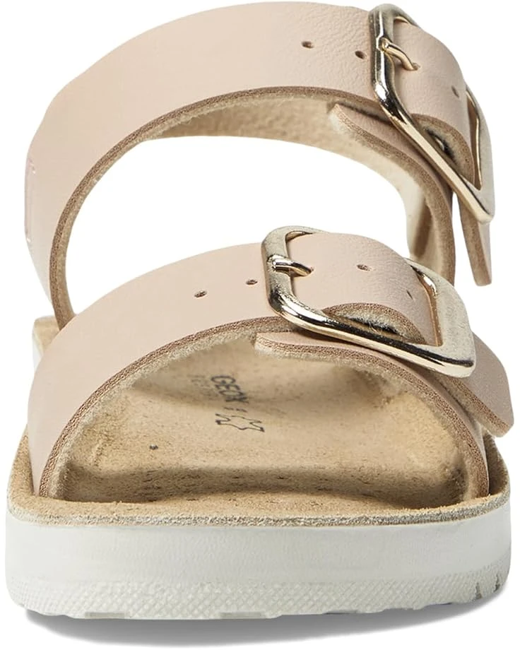 - Behold the Geox® Kids Sandal Costareig 10 – an ode to comfort and flair, designed for the intrepid souls of youth embarking on their adventurous journeys! Crafted with a synthetic upper and textile non-woven polyester lining, these sandals offer breathability and durability. The leather insole ensures superior cushioning, while the PU outsole provides excellent grip. Featuring dual straps with buckle closure for a secure fit, these sandals are perfect for every warm day’s escapade.