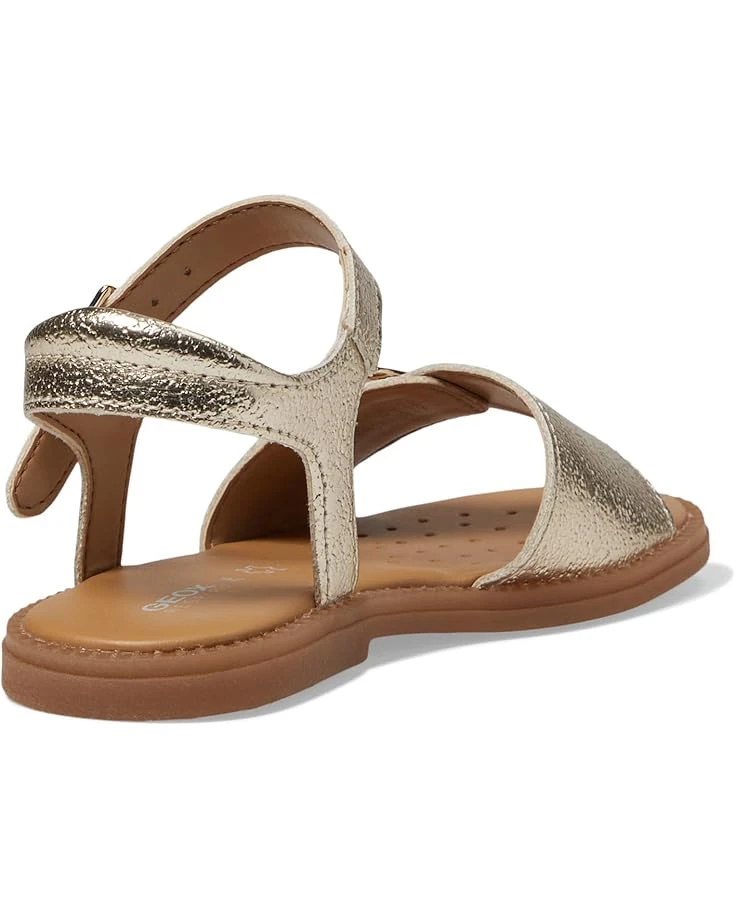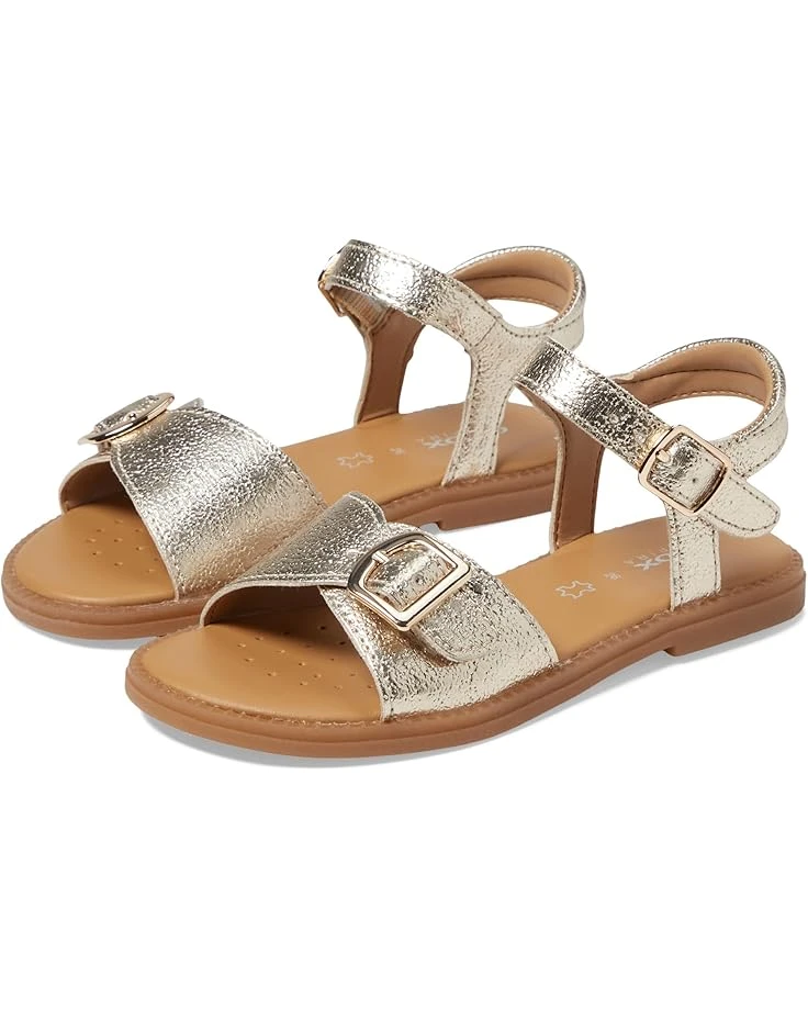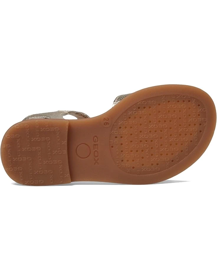 - Perfect for every child, the Geox® Kids Sandal Karly 71 sandal is designed for young feet during every phase of growth. Made of synthetic metallic polyurethane upper, the sandal features polyurethane lining, and leather calf full grain insole. A slip-on style with adjustable buckle straps allow custom fit. It has waterproof membrane to keep feet dry.