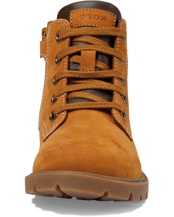 - Amp up your look and add style to verstaile outfits by complementing them with the Geox® Kids Shaylax 2 Boots, crafted with a perforated sole and a breathable-waterproof membrane. This allows for natural temperature regulation, thereby creating the perfect microclimate inside the shoe that keeps feet dry and comfortable for the whole day. The shoes are perfect for everyday wear ensure the correct development and wellbeing for young feet during every phase of growth. These are designed with a leather upper, nylon lining, and removable polyester insole. The laces & zip closure along with the hook-and-loop tab allows a secured fit and the slight block heel detail elevates the style.